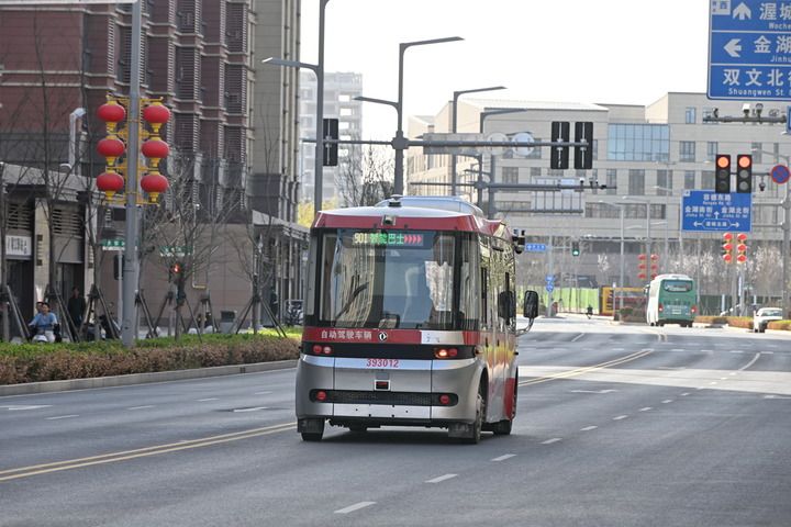 3月29日,智能網聯巴士在雄安新區容東片區道路上行駛。新華社記者牟宇攝