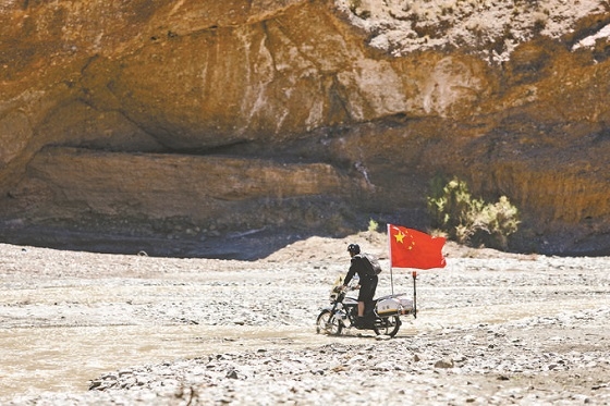 5月8日,烏恰縣公安局摩托警務隊隊員駕車穿過河流,前往海拔4000多米的放牧點服務群眾。