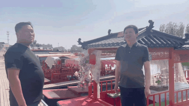 車紹彬(右)在白洋淀碼頭檢查游船治理工作。