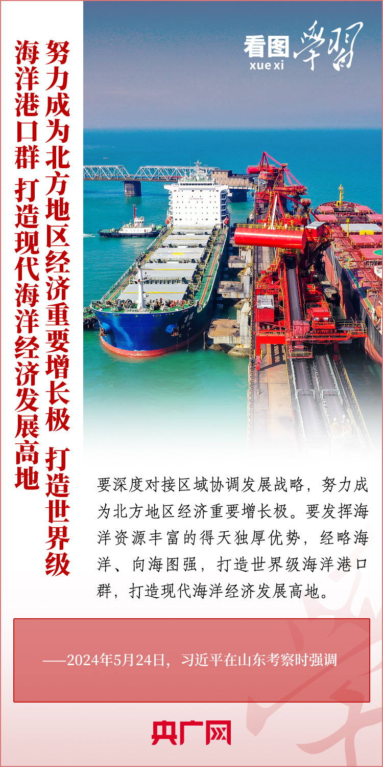 5月22日至24日,習近平總書記在山東考察調研,聽取山東省委和省政府工作匯報??倳洀娬{,山東要在全國發展大局中定好位、挑大梁,完整準確全面貫徹新發展理念,以進一步全面深化改革為動力,繼續在服務和融入新發展格局上走在前、在增強經濟社會發展創新力上走在前、在推動黃河流域生態保護和高質量發展上走在前,加快建設綠色低碳高質量發展先行區,打造高水平對外開放新高地,奮力譜寫中國式現代化山東篇章。一起來學習!