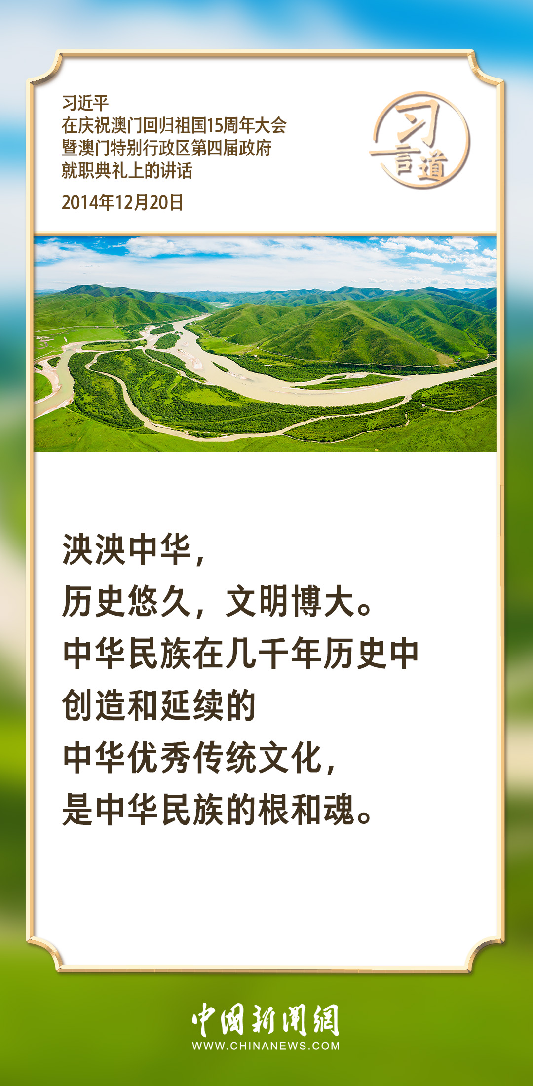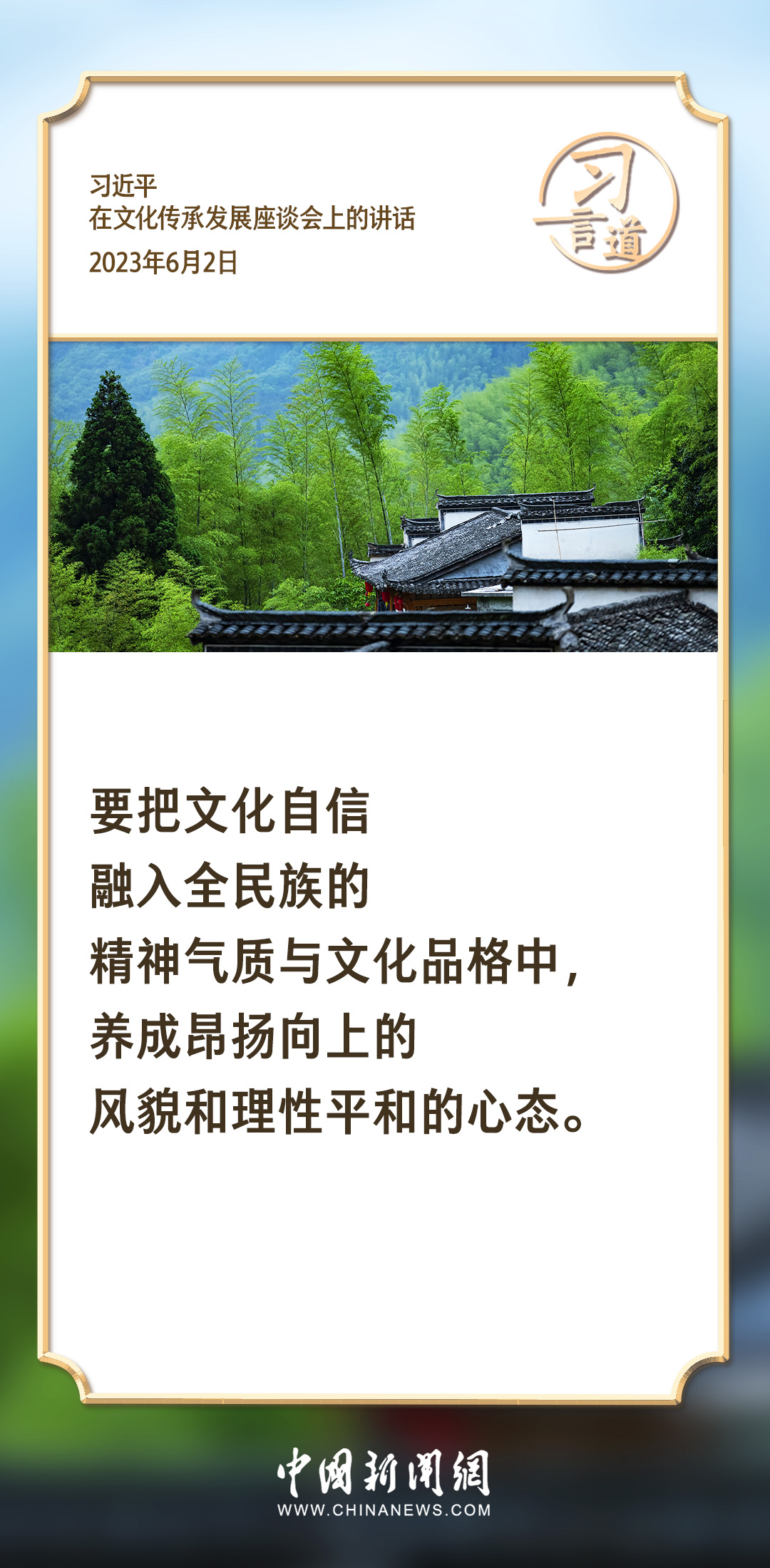 文化是一個國家、一個民族的靈魂。習近平總書記高度重視傳承中華優秀傳統文化,強調要把文化自信融入全民族的精神氣質與文化品格中,養成昂揚向上的風貌和理性平和的心態。