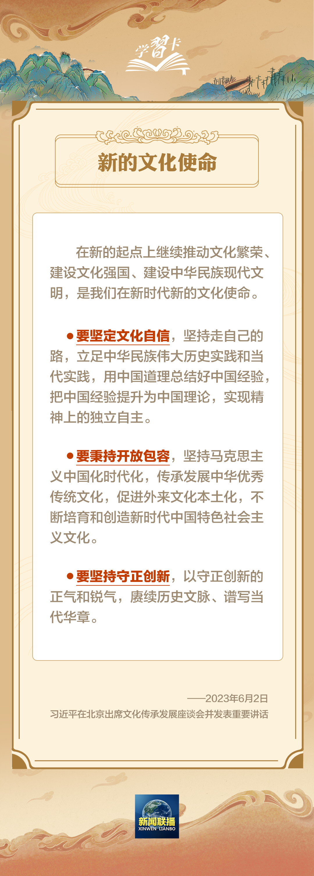 他強調,在新的起點上我們要擔負起新的文化使命,共同努力創造屬于我們這個時代的新文化,建設中華民族現代文明。在文化傳承發展座談會召開一周年之際,讓我們重溫總書記的講話,一起學習。