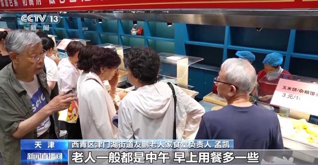 西青區津門湖街道友鵬老人家食堂負責人 孟凱:老人一般都是中午、早上多一些,我們的餐飲一般是晚上?,F在廚師的工作飽和度就提高了,他既供應我們酒店的餐,也供應我們老人家食堂的餐。