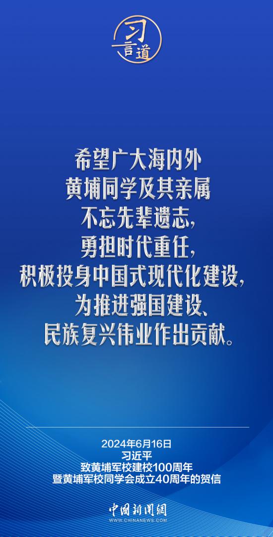 在黃埔軍校建校100周年暨黃埔軍校同學會成立40周年之際,中共中央總書記、國家主席、中央軍委主席習近平發來賀信,代表中共中央向黃埔軍校同學會表示熱烈祝賀,向廣大海內外黃埔同學及其親屬致以誠摯問候。習近平指出——