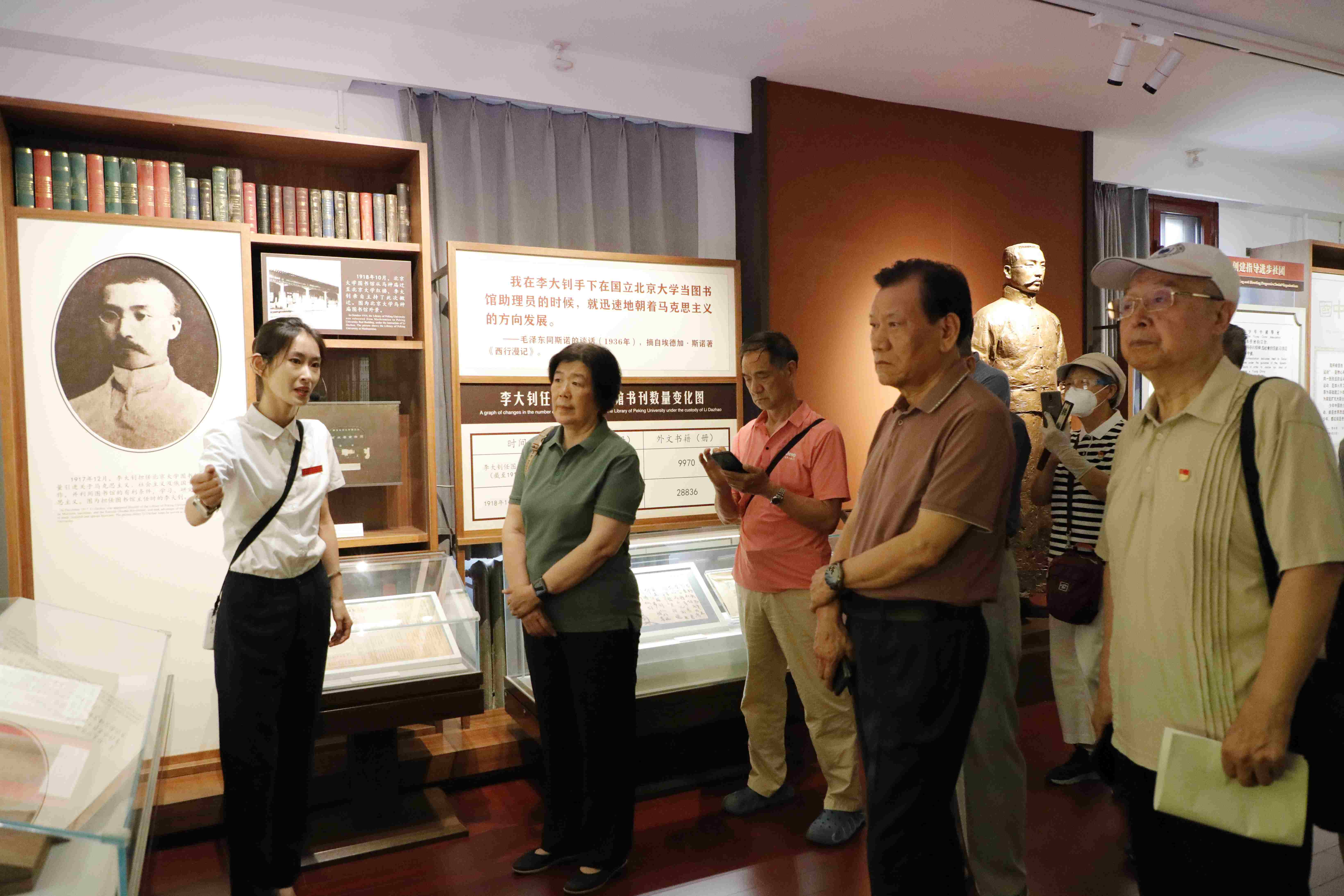 北大紅樓是馬克思主義早期在中國傳播的重要標志,有近百年的歷史。在這座古色古香的建筑內部,拾級而上,層層臺階仿佛歷史的脈絡,將到訪者帶回往昔崢嶸歲月。樓內,一件件文物將時間定格,一個個場景將歷史凝固。大家認真聆聽講解,仔細觀看展品,接受思想洗禮,仿佛穿越回百年前那風云激蕩的歲月,深刻感悟“覺醒年代”革命先輩崇高的愛國之志、無畏的革命情懷和偉大的建黨精神。有的老黨員邊參觀邊感慨:“此刻好像讓我們從浮躁的生活中脫離,也從自我的視角中抽離,不自覺地從內到外重新審視自己?!?/p>