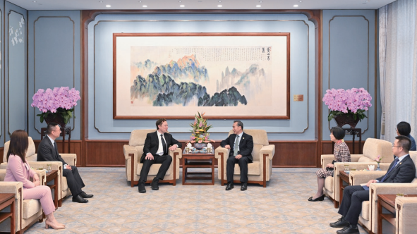 >> 2024年4月28日,作者(左四)在京會見美國特斯拉公司首席執行官埃隆·馬斯克。