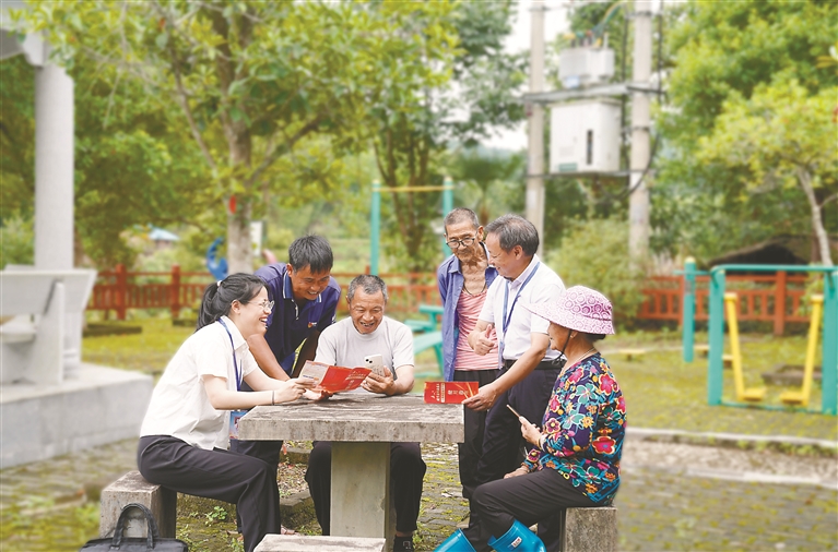 福建省建寧縣紀委監委緊盯農村集體“三資”管理、惠民資金發放等重點領域,持續拓展問題線索發現渠道,織密小微權力監督網。圖為近日,該縣紀檢監察干部向群眾宣傳基層小微權力監督平臺使用方法。 黃微 攝