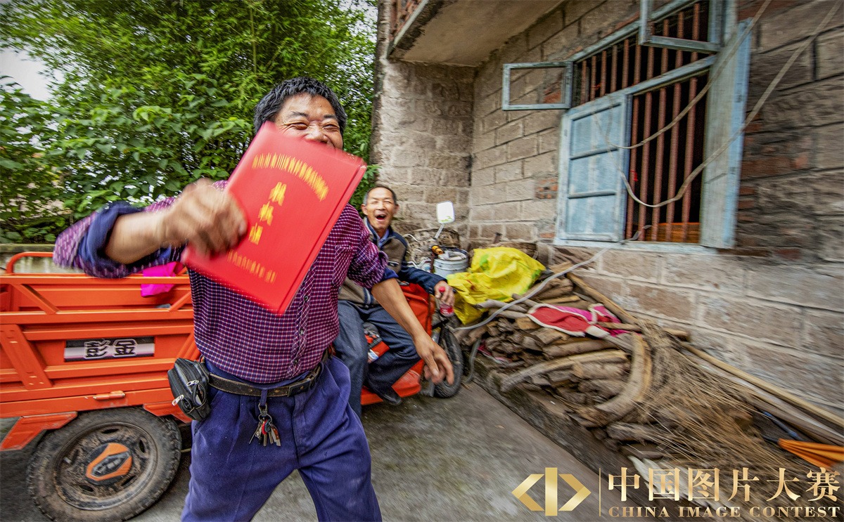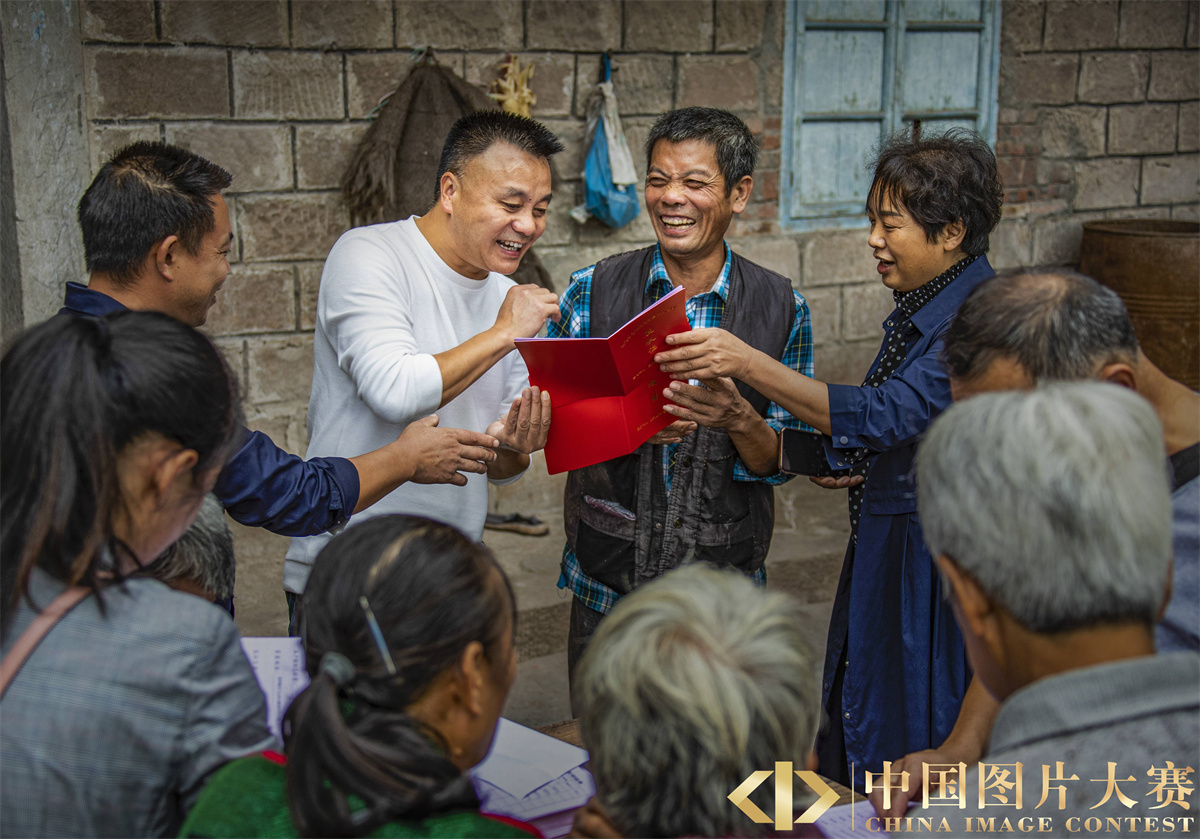 圖5:2020年9月28日,在重慶市永川區來蘇鎮關門山村,村民領取股權證。