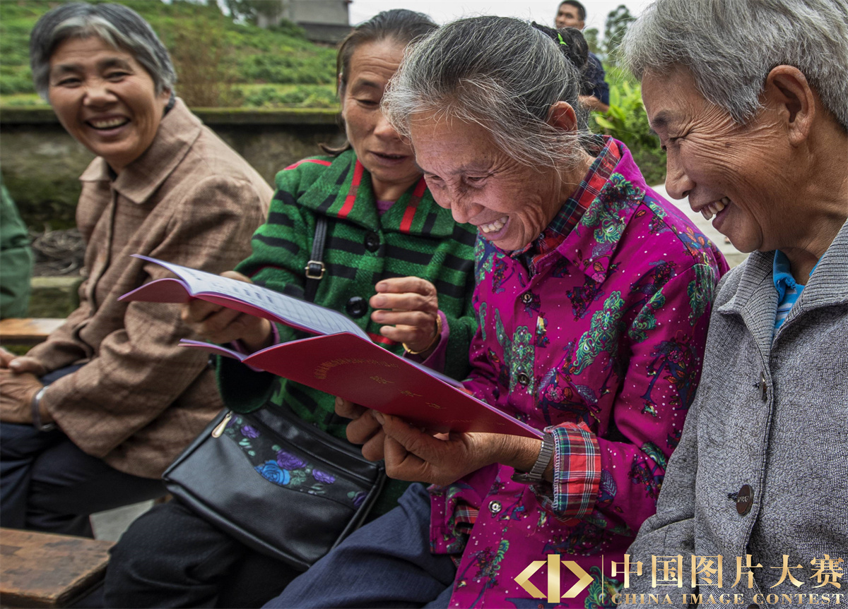 圖3:2020年9月28日,在重慶市永川區來蘇鎮關門山村,村民開心地看著屬于自己的股權證。