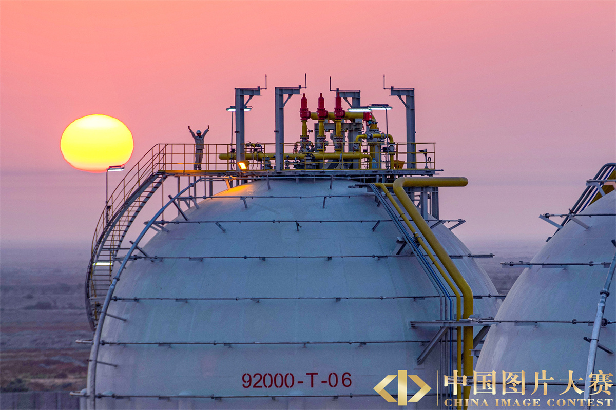 圖2:圖為2023年10月10日在伊拉克哈法亞油田拍攝的天然氣處理項目6號罐區。