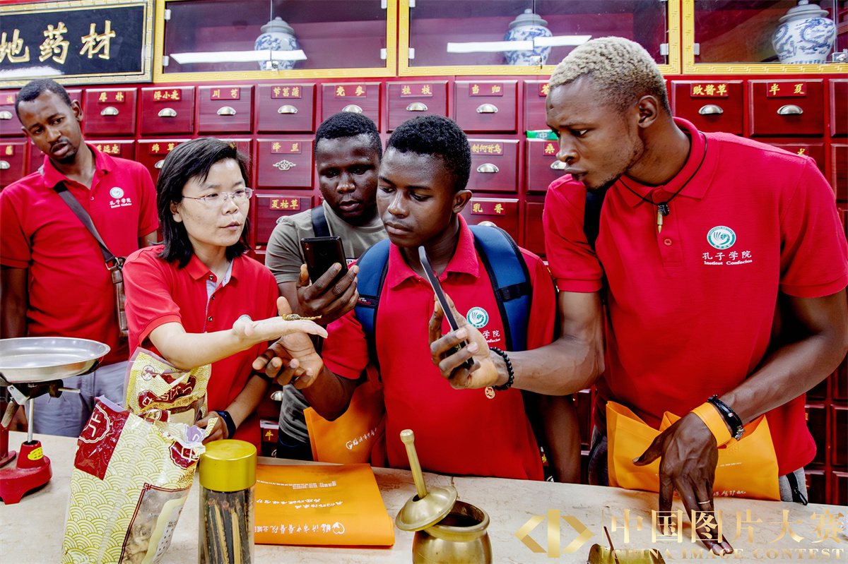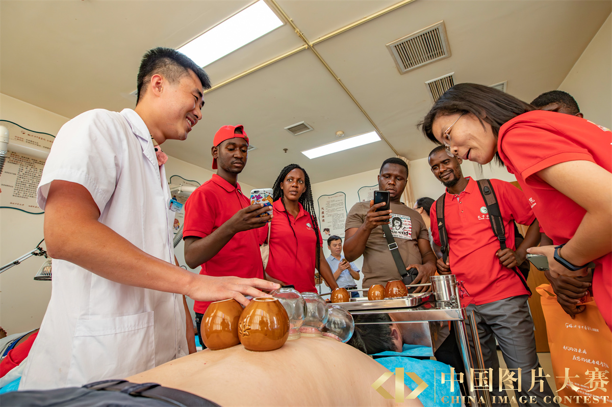 圖集說明:隨著中國文化和漢語在海外的傳播,中醫這一古老的東方醫學,正被越來越多的外國朋友所接受,成為他們了解中國的一道橋梁。2019年9月4日,幾內亞科納克里大學孔子學院的師生們在臨沂大學外國留學生中醫藥文化體驗基地——臨沂市中醫醫院進行體驗活動。他們參觀了中草藥房,體驗了針灸、拔罐等中醫傳統療法,親身感受中醫藥文化的魅力。