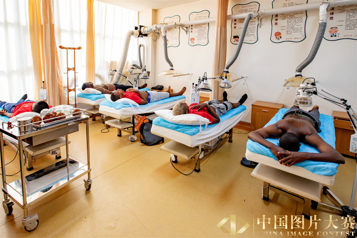 圖8:2019年9月4日,在山東省臨沂市中醫醫院,外國留學生“沉浸式”體驗中醫傳統療法。