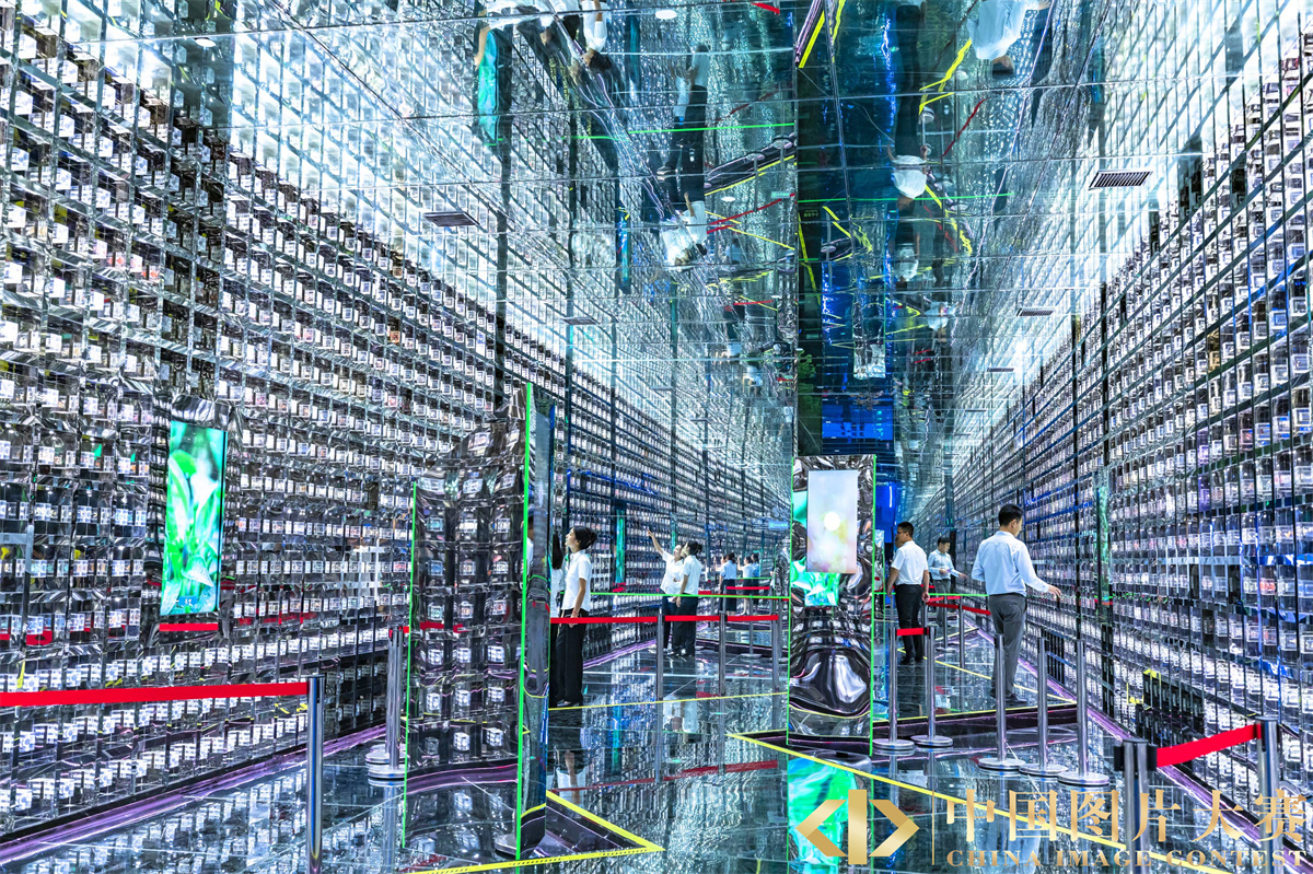圖5:2022年7月4日,在四川省彭州市天府蔬香現代農業產業園種子銀行里,工作人員在查看屏幕信息。