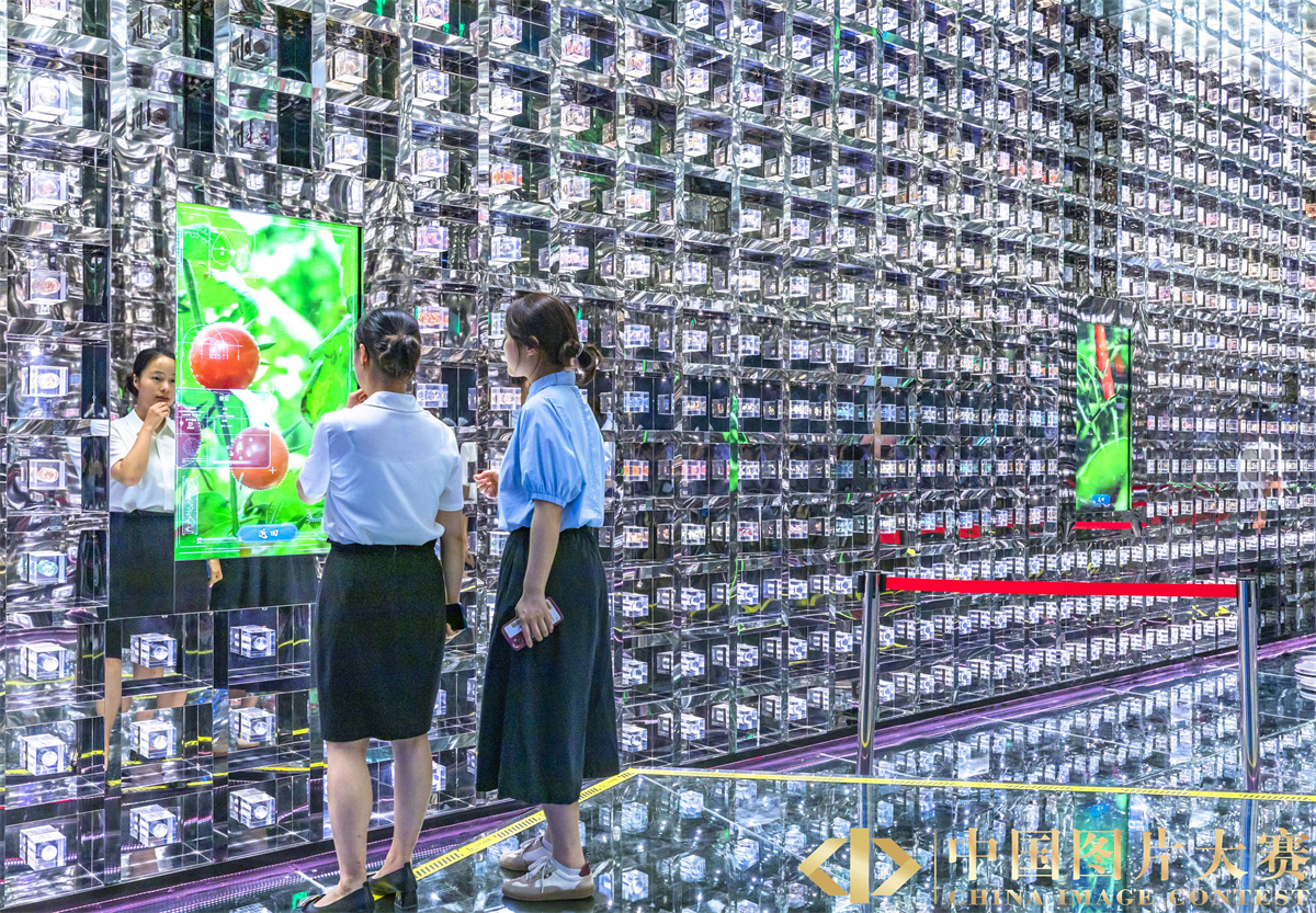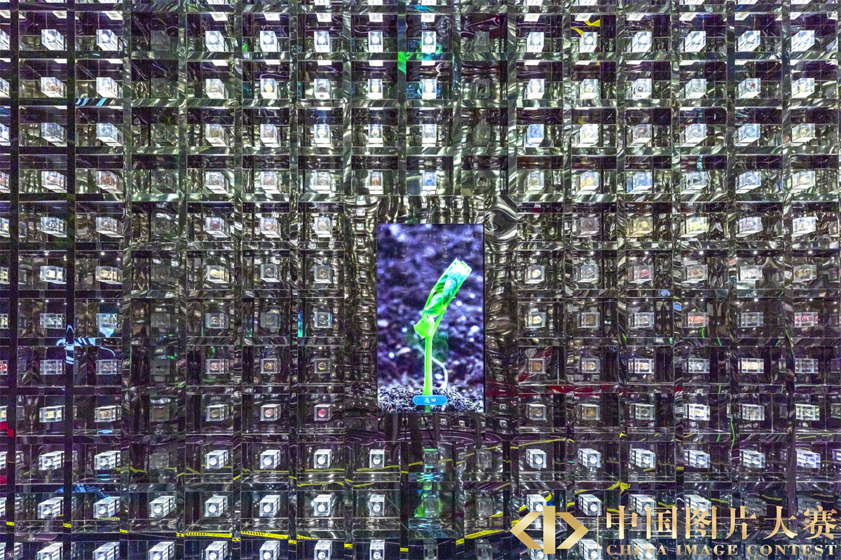 圖3:2022年7月4日,在四川省彭州市天府蔬香現代農業產業園種子銀行大廳的屏幕上,播放著種子發芽生長的過程。