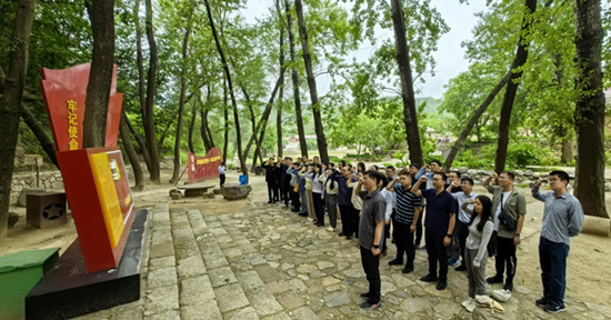 2024年5月29日,中央網信辦網絡綜合治理局黨支部全體黨員赴北京市延慶區大莊科鄉平北紅色第一村開展主題黨日,重溫入黨誓詞。
