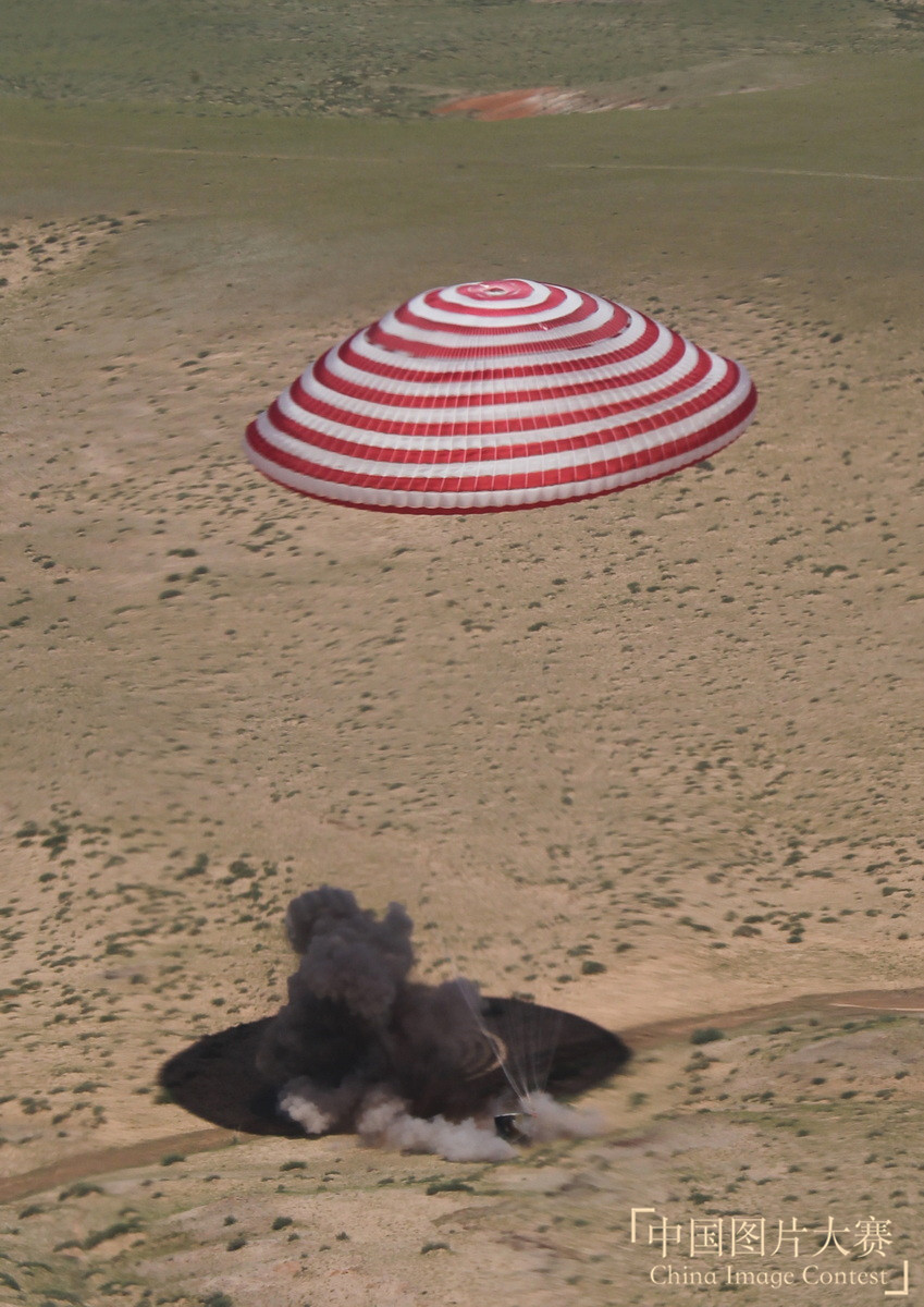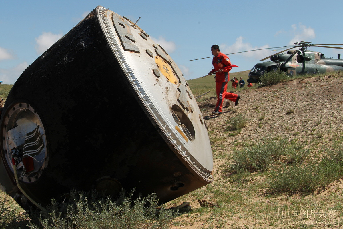 圖2:2012年6月29日,神舟九號載人飛船返回艙在內蒙古主著陸場成功著陸。