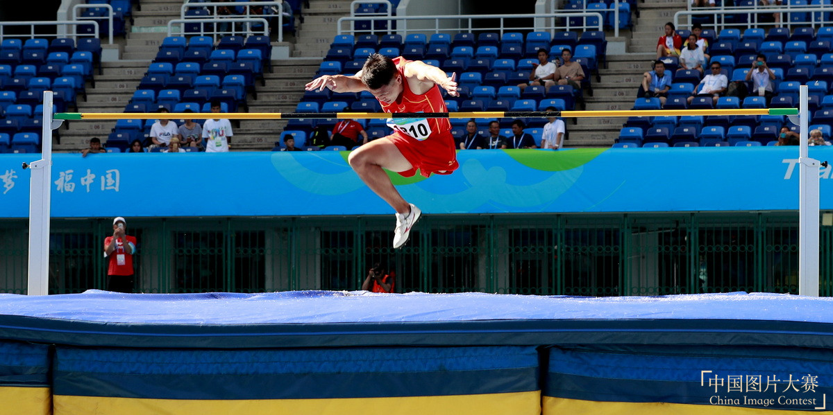 圖2:2019年8月28日,運動員參加跳高比賽。