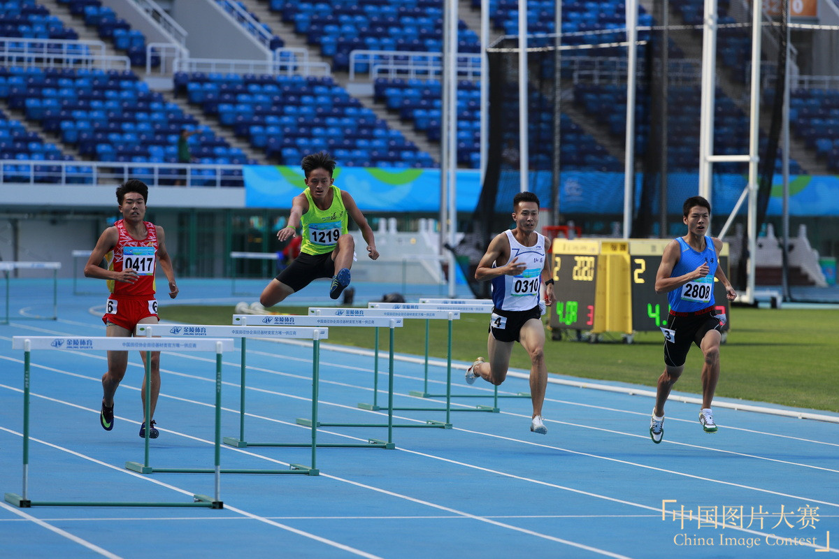 圖5:2019年8月29日,運動員參加跨欄比賽。