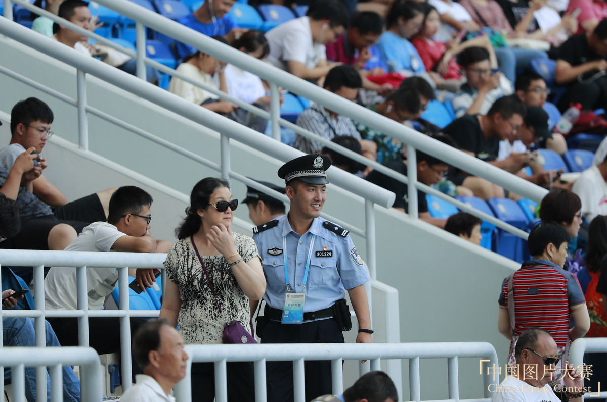 圖6:2019年8月31日,參加殘運會安保任務的公安民警在現場維持秩序。