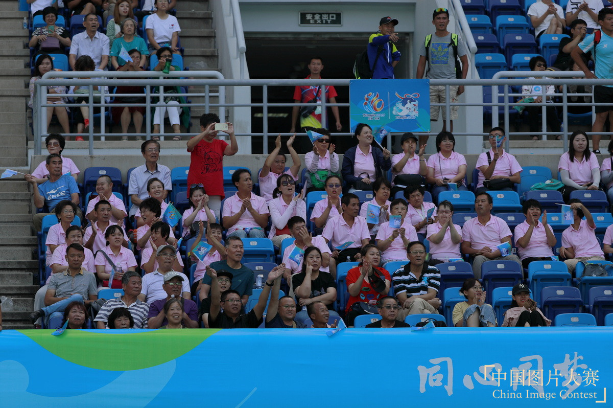 圖7:2019年8月28日,殘運會比賽現場觀眾為運動員助陣加油。