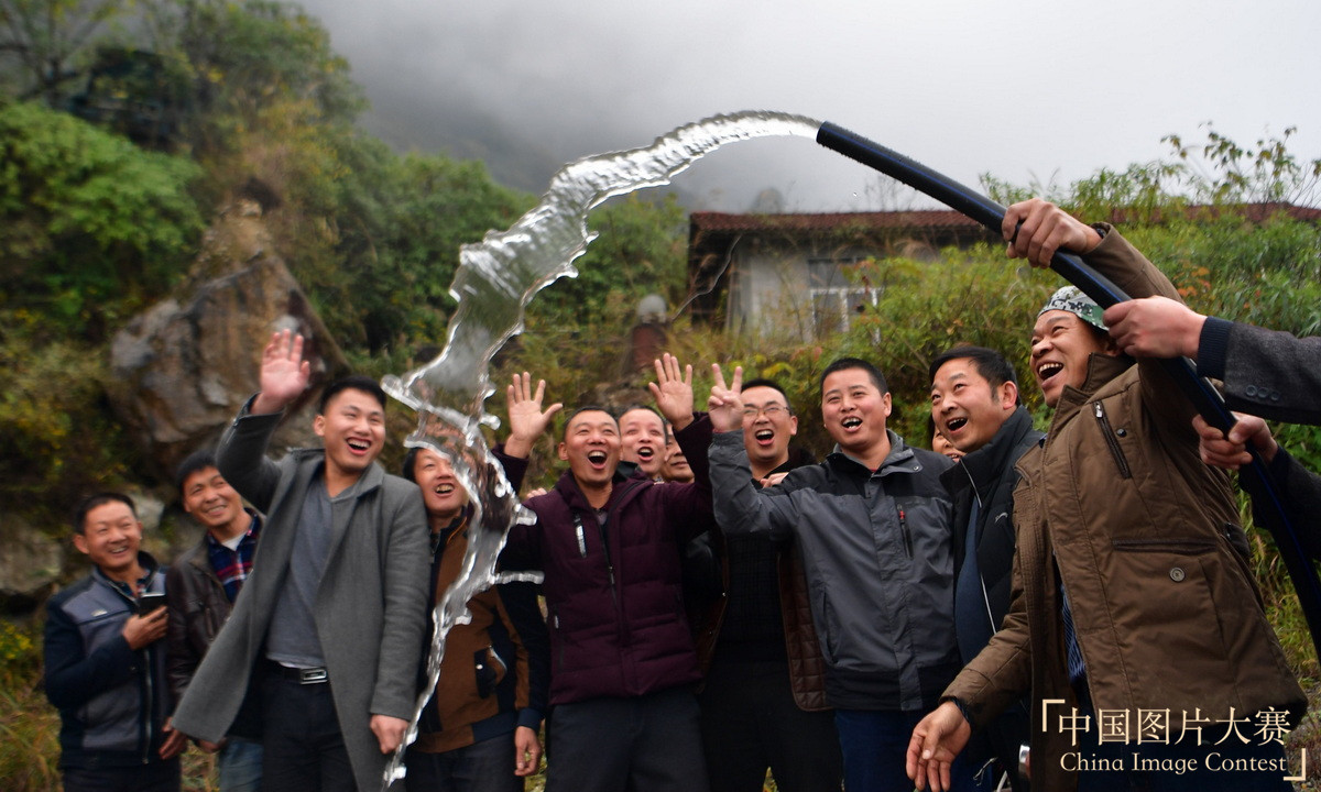 圖集說明:缺水是湖北省恩施市屯堡鄉田鳳坪村人的心病,每年秋冬季,當地部分農家樂不得不停業。為此,解決“吃水難”,成為駐村扶貧工作隊的重要任務。2018年年初,扶貧工作隊決定從朝東巖山腰絕壁的天寶洞深處引水。經過近一年的建設施工,2018年12月27日晚,絕壁巖洞的清泉流進村里,解決了村中多年的“吃水難”問題。