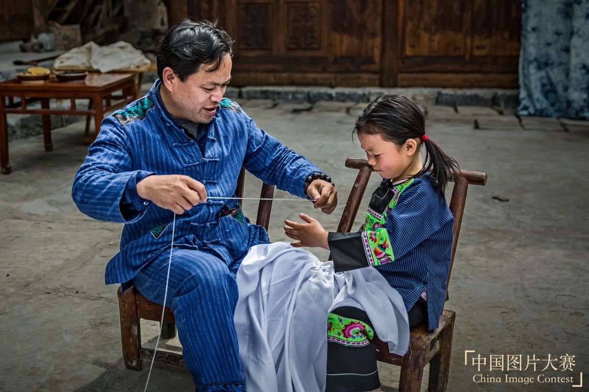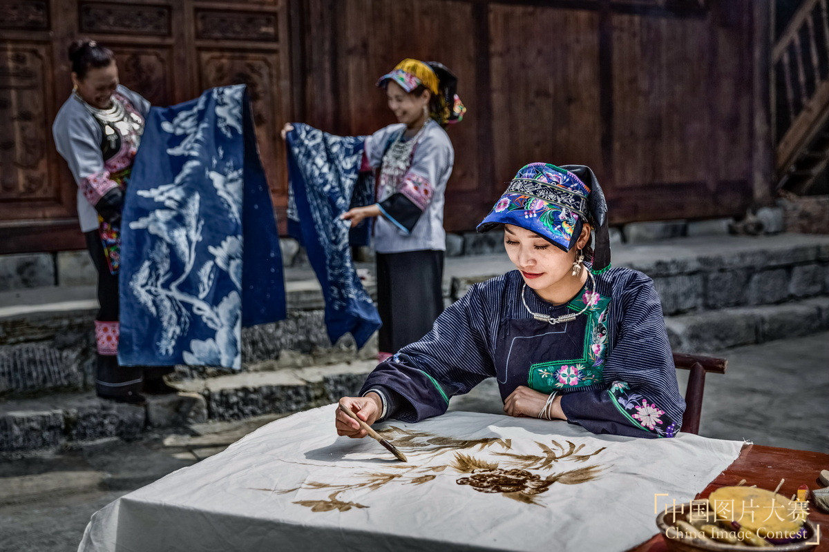 圖集說明:殘疾人石杰忠是湖南花垣縣雙龍鎮板栗村蠟染傳承人。他憑借嫻熟的苗族蠟染技藝,成立苗家蠟染合作社,自己出原料和技術,免費為村民培訓傳授技藝,先后幫助20多名殘疾人就業。在石杰忠的帶領下,當地及周邊村寨100多個村民也制作起蠟染來,他們的蠟染作品不僅俏銷當地及周邊地區市場,還漂洋過海,遠銷東南亞,“染”出了致富的好日子。