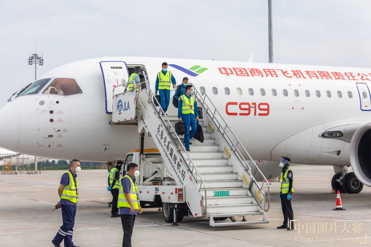 圖集說明:商用飛機一直被稱為現代工業皇冠上的明珠。2017年5月5日,隨著中國C919大型客機的首飛成功,中國人的大飛機夢又向前邁進了一步。2022年9月29日,C919大型客機取得中國民航局頒發的型號合格證。這也意味著經過15年的努力,我國第一次嚴格按照國際通行適航標準走完了一款大型噴氣式客機設計、制造、試驗、試飛及適航取證全過程。