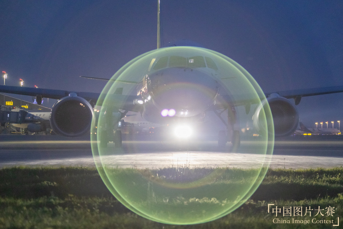 圖8:2022年7月25日,飛機前起落架的燈光形成光暈。