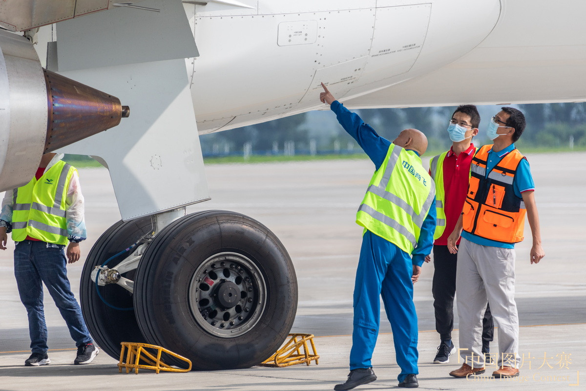 圖9:2022年7月25日,隨機試飛工程師在繞機檢查。