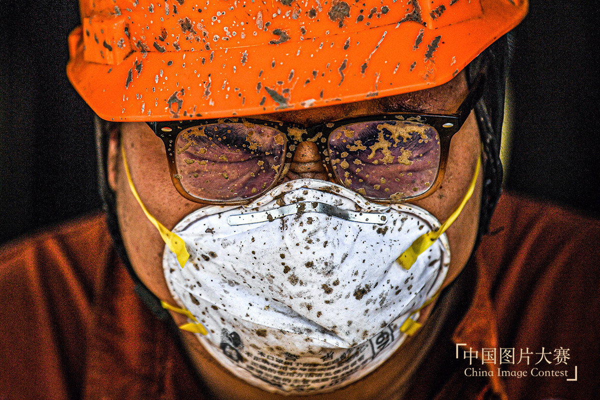 圖5:2020年7月27日,一名鉆井工人的眼鏡和口罩在作業時被濺滿了泥漿。