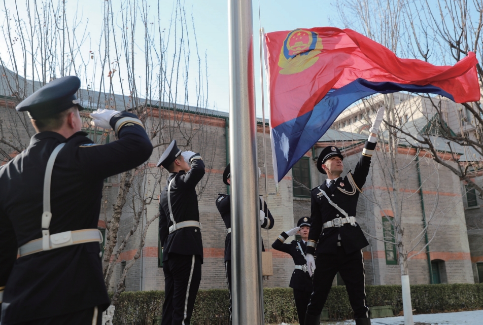 >> 2024年1月10日,公安部機關在人民警察節舉行隆重的升警旗儀式。