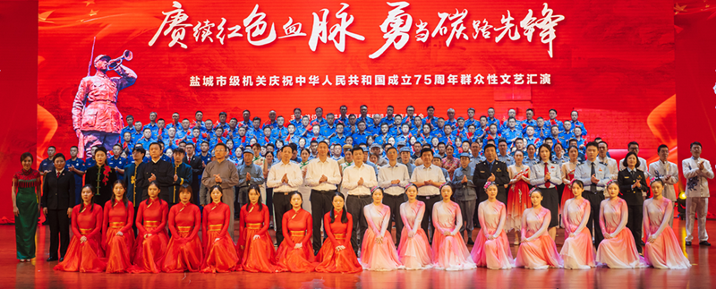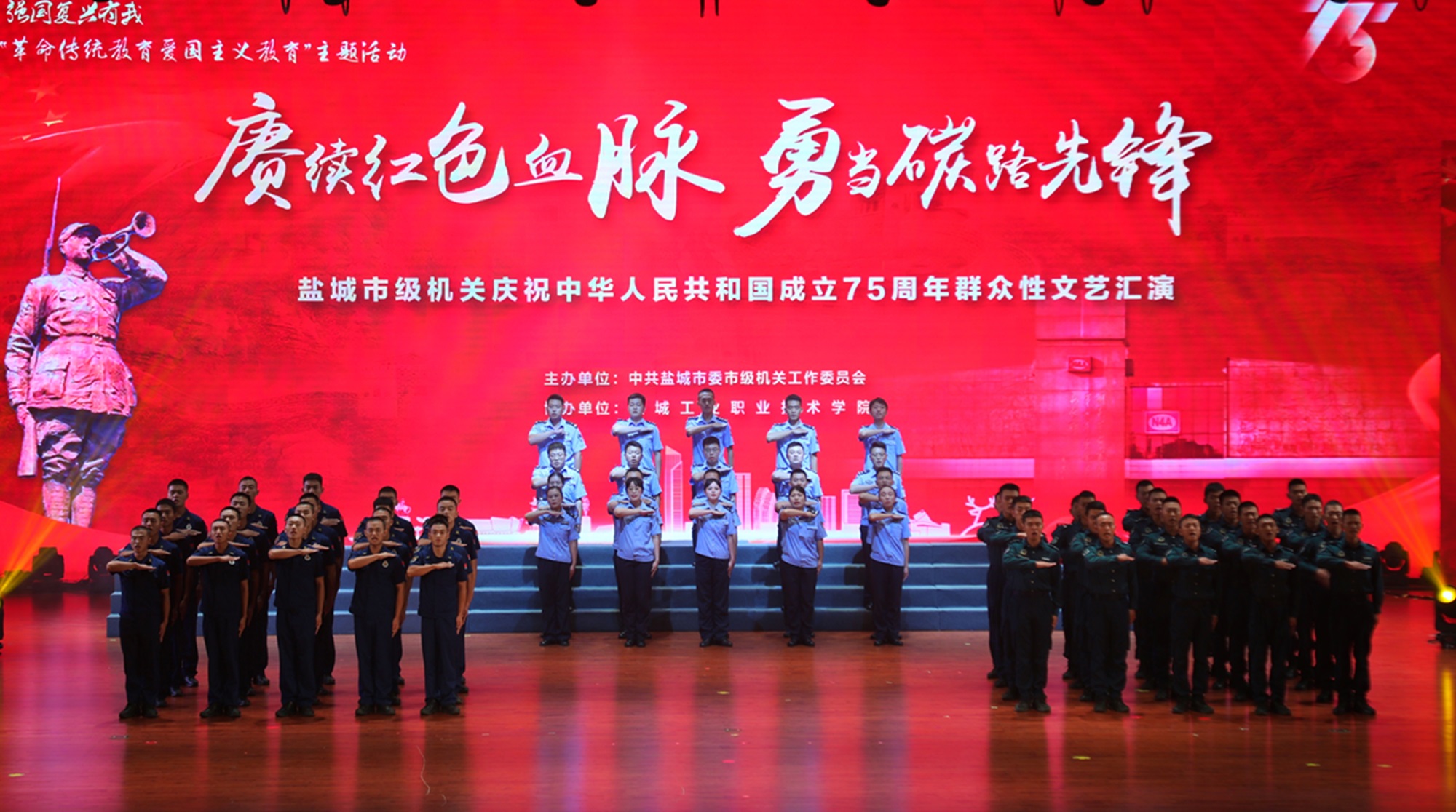 為慶祝中華人民共和國成立75周年,深入學習宣傳貫徹黨的二十屆三中全會精神和習近平總書記在鹽城考察時的重要指示精神,廣泛開展革命傳統教育和愛國主義教育,9月27日下午,鹽城市委市級機關工委在鹽城工業職業技術學院舉辦“賡續紅色血脈 勇當碳路先鋒”——鹽城市級機關慶祝中華人民共和國成立75周年群眾性文藝匯演。鹽城市委常委、市委秘書長薛盛堂,市委副秘書長唐宏,鹽城工業職業技術學院黨委書記邵從清,市委宣傳部副部長、市文明辦主任張孝榮,市委市級機關工委書記王勝利出席活動。