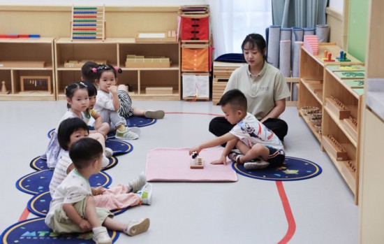 2024年8月20日,在嘉興市南湖區東柵街道的一家托育機構里,小朋友在上課。新華社記者 徐昱 攝