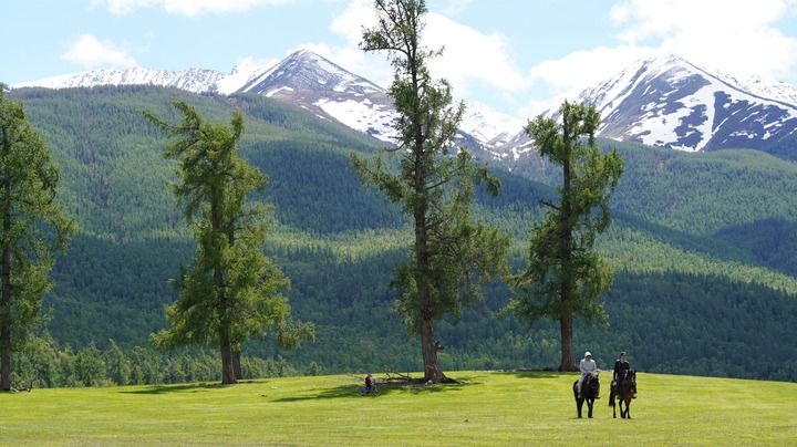 2024年6月4日,游客在新疆阿勒泰地區哈巴河縣的草原上騎馬游玩。 新華社記者 阿曼 攝