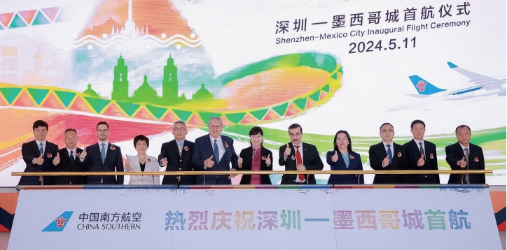 2024年5月11日深夜,墨西哥城貝尼托·華雷斯國際機場迎來闊別4年的“遠客”——一架橫跨太平洋抵達墨西哥的中國民航客機。為了給中國客人接風洗塵,當地機場工作人員精心準備了過水門的最高禮儀。該航線從深圳起飛,不經停直達墨西哥城,全程飛行1.4萬余公里。中墨客運直航順利開通,標志著疫情后我國與拉丁美洲和加勒比地區之間首條不經??瓦\航線正式恢復,高效落實了兩國元首舊金山會晤重要共識,成為2024年對拉外交工作的亮點工程、便利雙方人員往來的民心工程、服務高質量發展的開放工程。目前,墨西哥成為從我國出發的民航客運航班可以直飛到達的最遠國家。