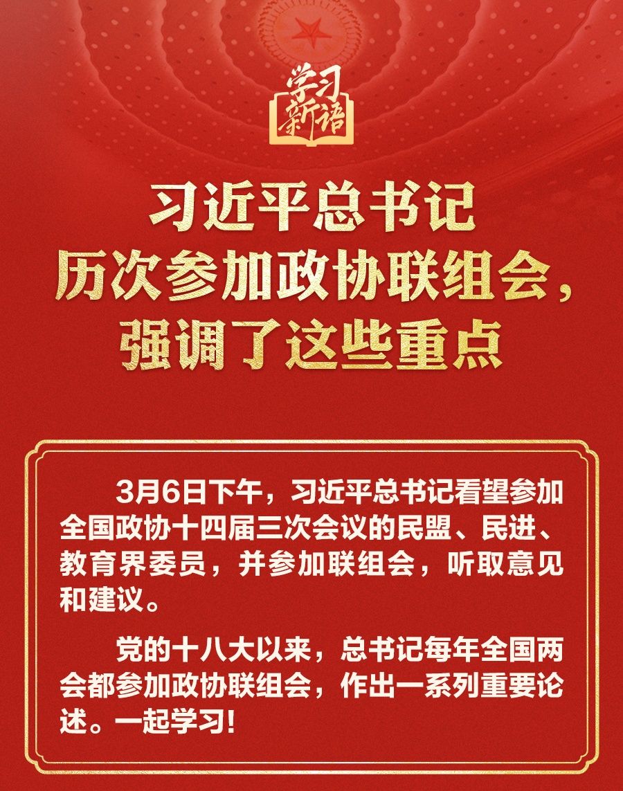 習近平總書記歷次參加政協聯組會,強調了這些重點