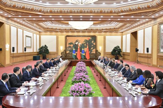 新華社北京5月13日電 5月13日下午,國家主席習近平在北京人民大會堂同來華進行國事訪問的巴西總統盧拉舉行會談。
