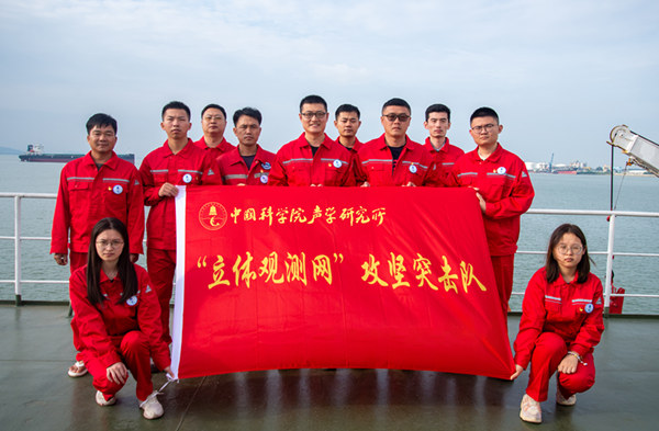 聲學所科研人員在大海上向祖國立下“深耕藍色國土,建設海洋強國”的莊嚴承諾。