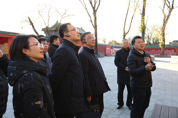 黨支部赴北京市先農壇開展主題黨日,作者(右一)為黨員干部講解“北京中軸線”申遺有關工作。