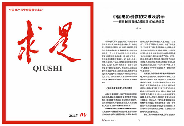 黨支部姜超同志牽頭撰寫的《中國電影創作的突破及啟示——動畫電影〈哪吒之魔童鬧?!党晒μ揭颉吩?025年第9期《求是》雜志發表。