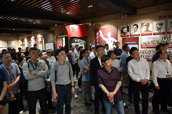 5月15日下午,參訓同志集體到新華社山東分社誕生地尋訪。新華社攝影部宋為偉攝。