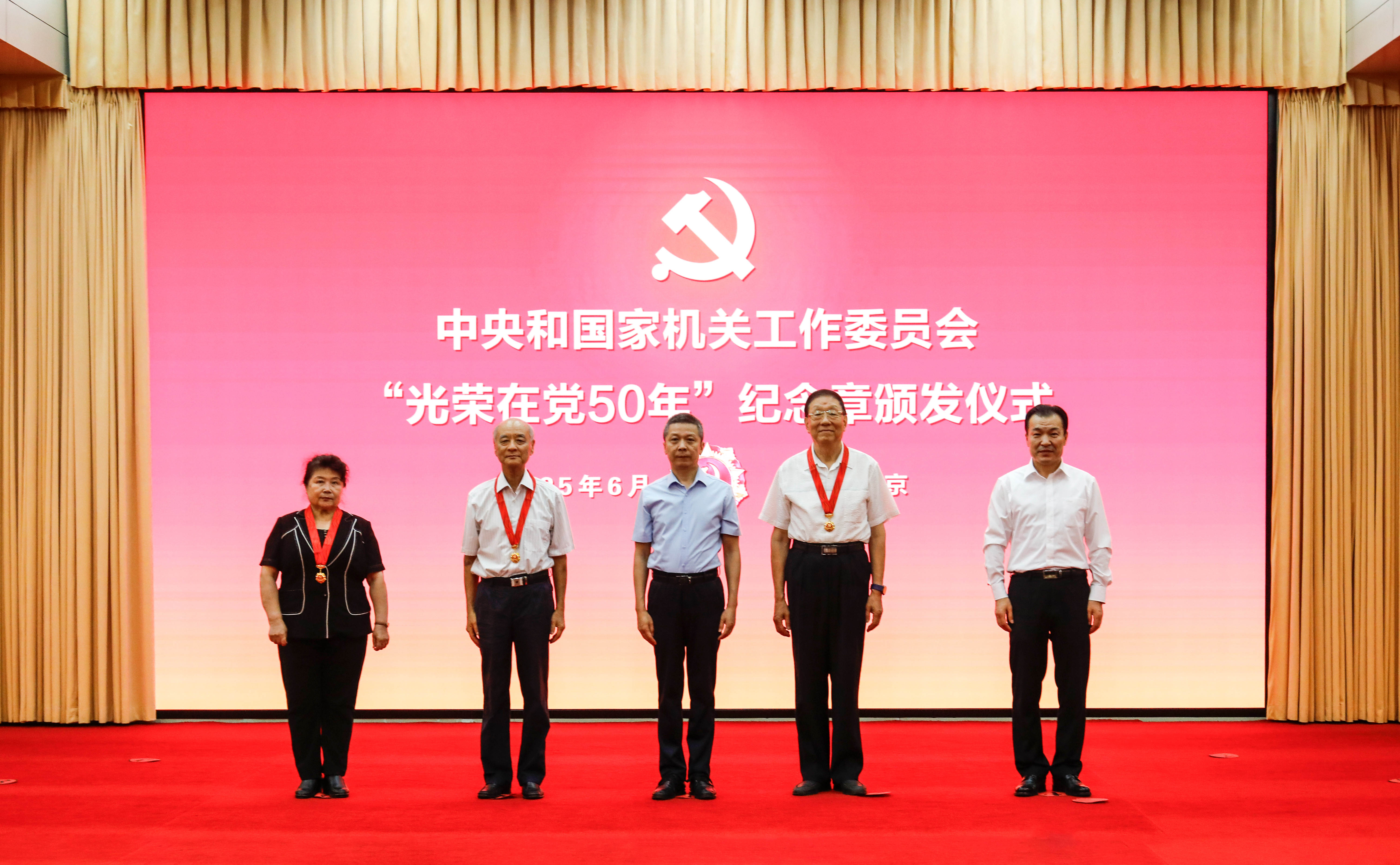 6月26日上午,中央和國家機關工委舉行2025年“光榮在黨50年”紀念章頒發儀式。中央和國家機關工委副書記燕軍出席儀式并講話,為2025年工委獲得“光榮在黨50年”紀念章的同志頒發紀念章。工委委員、組織部部長閃偉強出席。