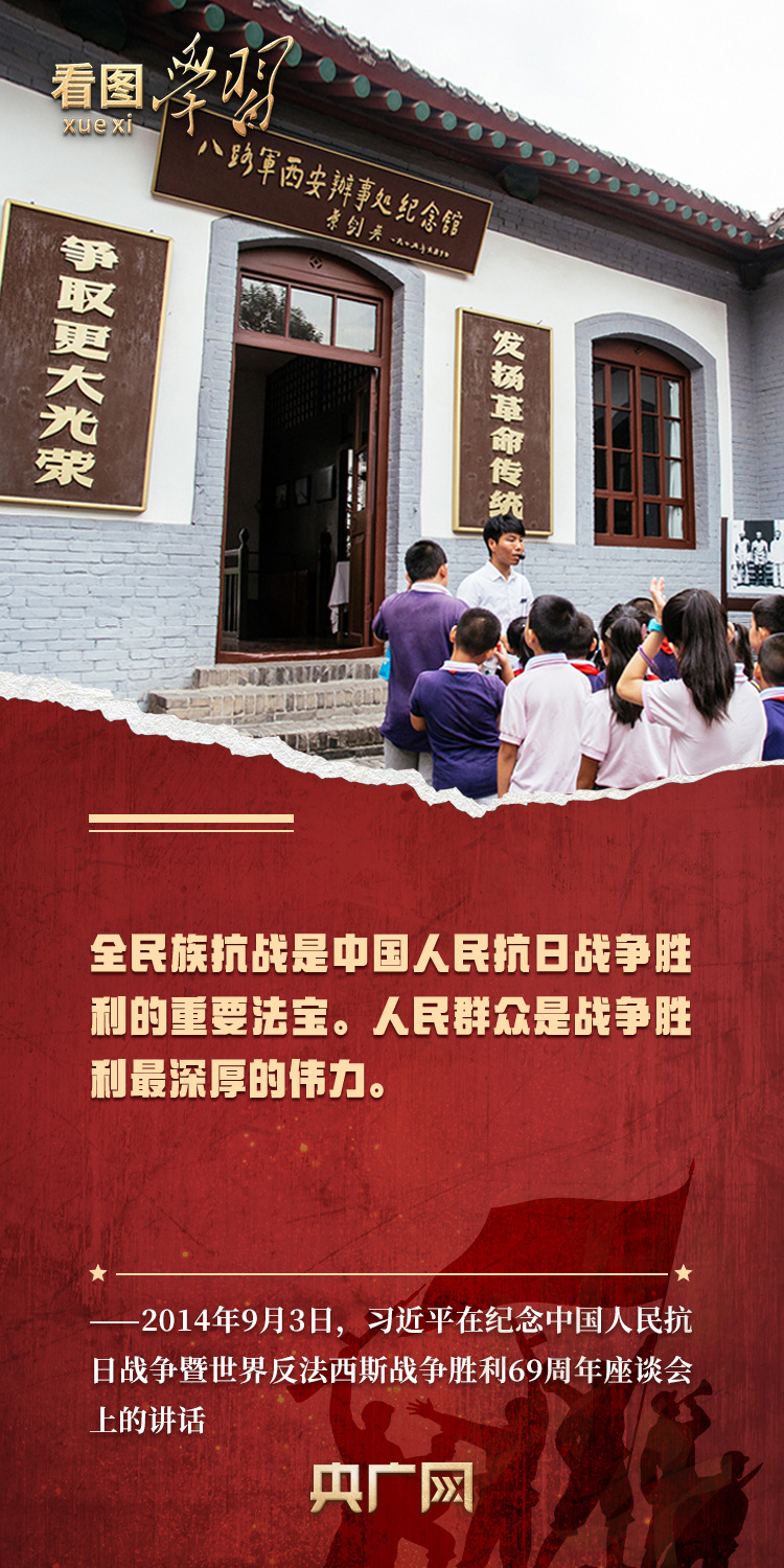 “全民族抗戰是中國人民抗日戰爭勝利的重要法寶?!秉h的十八大以來,習近平總書記多次在重要場合談及中國人民抗日戰爭,闡述全民族抗戰的重要歷史意義,強調要弘揚偉大抗戰精神。