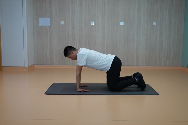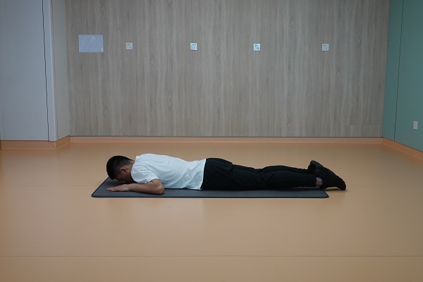 6、眼鏡蛇式:俯臥在瑜伽墊上,雙手在胸部兩側,雙手將軀干支撐離地,保持3-5秒,進行3-5次為1組,重復2-3組,組間休息60秒。