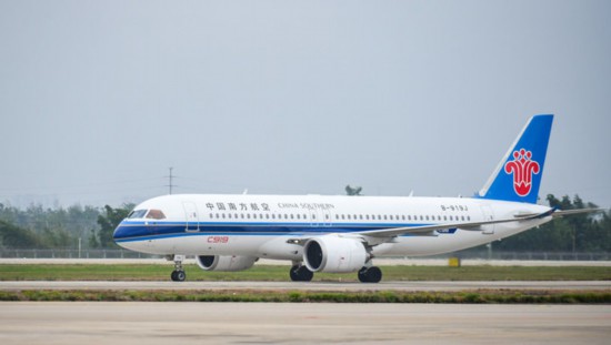 2024年12月11日,由C919執飛的中國南航CZ6786航班在??诿捞m國際機場降落,國產大飛機C919在海南的商業飛行“首秀”順利完成。新華社記者 楊冠宇 攝