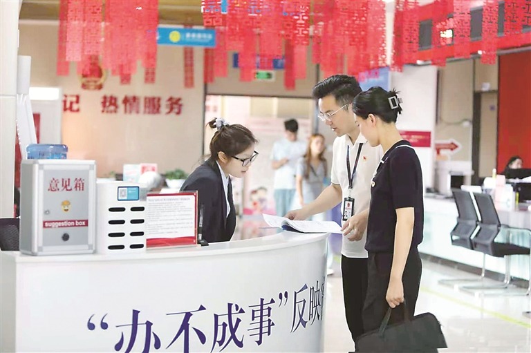 重慶市秀山土家族苗族自治縣紀委監委將加強作風建設作為提升群眾滿意度、優化營商環境的重要抓手,緊盯不擔當不作為、服務效率低下等問題,對窗口服務單位進行常態化監督檢查,不斷推動作風優化。圖為該縣紀檢監察干部在縣政務服務中心了解有關情況。胡程 攝
