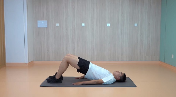 1、仰臥橋式挺臀:仰臥位,屈膝雙腳著地,腹部收緊,臀部夾緊抬起,使肩、髖、膝處于同一直線上,大小腿呈90度,肌力較好者,可在勾腳尖狀態下完成該動作。20-30個/組,做3-5組,組間休息60秒。
