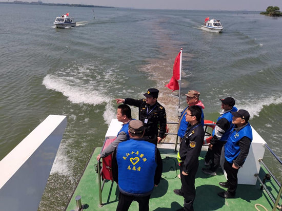 依托黨建共建平臺,構建全市統籌“一盤棋”協同監管機制,深化與公安、交通(海事)、水務、市場監管等部門的聯動配合,打造“部門聯合、條塊聯動、權責清晰、運行高效”的管理體系。通過常態化開展部門聯席會、設立聯合執法日等機制,建成陽澄湖全域數字監管天眼系統,對禁捕水域實施全天候、全方位、無死角監管。聯合專業公益組織組建志愿者巡護隊伍,深入開展“藍馬甲護漁”行動,重點覆蓋陽澄湖種質資源保護區等水域,織密群眾參與的禁漁防護網。各區縣因地制宜推出特色監管模式:張家港市打造“漁警聯動”模式,實現執法資源高效整合;常熟市創立“虞劍護江”禁漁聯盟,形成“1+4+N”聯勤聯動工作機制,顯著提升案件響應和處置效率;太倉市打造水、陸、空三路并行,市、鎮、村三級聯動的長效禁捕管理機制,形成協同配合、高效運轉的工作格局。
