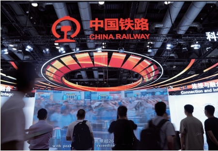 2025年7月9日,與第十二屆世界高速鐵路大會同期舉行的第十七屆中國國際現代化鐵路技術裝備展覽會上,觀眾參觀中國國家鐵路集團有限公司展臺。